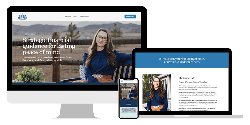 Complete online intake form where you’ll choose your colors and fonts from our pre-selected pairs, choose/upload your photos & logo, and complete our guided copywriting step.